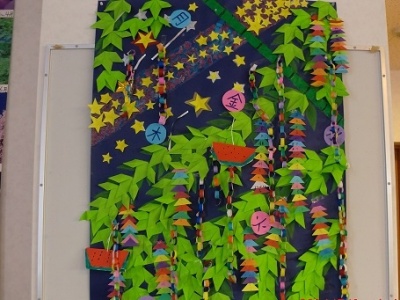 壁面でも笹の葉を折り紙で折り、とても賑やかな作品が出来上がりました。