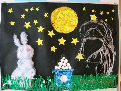 9月はお月見さんということで、和紙でウサギを製作しています。