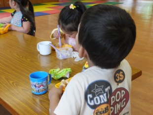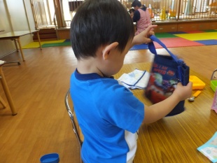 みんな空っぽになったお弁当箱を、「全部食べたよ~」と先生に嬉しそうに見せていました。