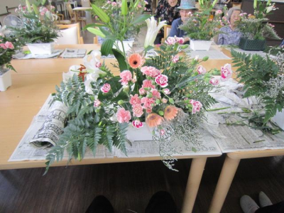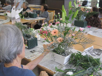 6月下旬、あっぷる介護付有料老人ホームにてフラワーアレンジメントを行いました。