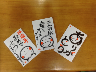 二人羽織をご覧になったケアマネジャーさんより、その場で描いた絵手紙をいただきましたとても感激しました