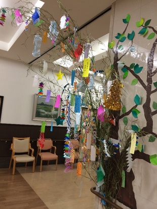 七夕飾りも利用者様と一緒に制作し、短冊に「健康第一」「早くコロナが収まりますように」