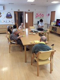 利用者の皆様とスタッフでおやつにホットケーキを作りました。