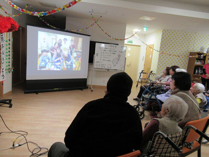 グループホーム加古川で、5周年祭を行いました。 ご家族様を招待し、昼食は手作りちらし寿司にサンドウィッチ、海老フライやコロッケ、果物を用意してバイキング形式にし、お好きな物を召し上がって頂きました。 昼食後は、今年は「昭和100年」にちなんだ○×クイズや、1年間の想い出を振り返るスライドショーを皆さんで観ていただきました。 ご家族様からは、「楽しかったです」とお言葉を頂戴し、入居者の皆様もスライドショーに写るご自身のお顔に「いやぁ、いつ撮ったんよー」等と笑顔があふれる時間になりました。 開設からあっという間の5年でしたが、これからも皆様に愛され、楽しんでいただける施設作りを行ってまいります。
