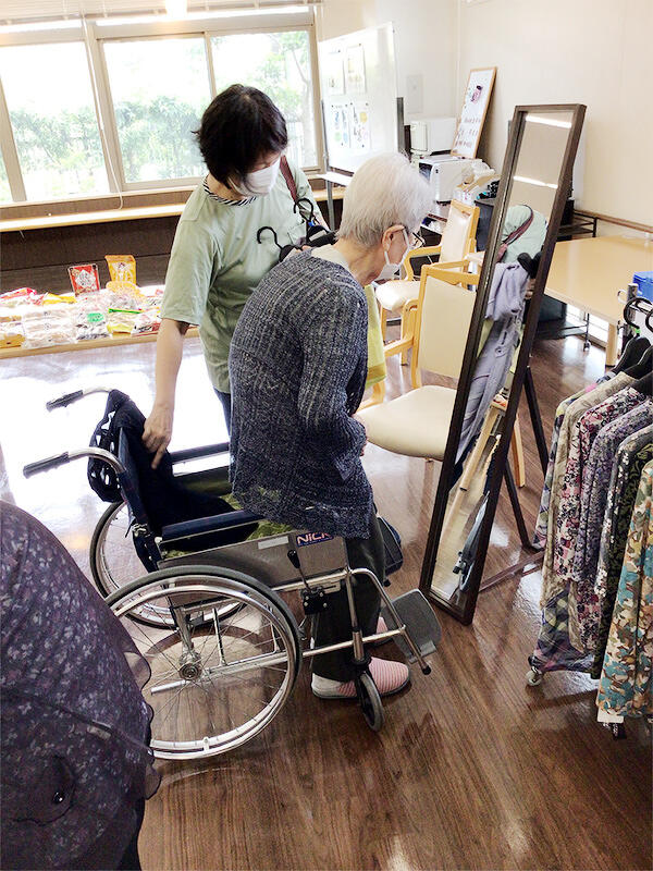 当日は、多くの入居者様とご家族様にご参加いただき、洋服や靴などを一緒に選ばれる姿が見られ普段の施設生活とは異なる華やいだ雰囲気の中で、笑顔あふれるひとときとなりました。