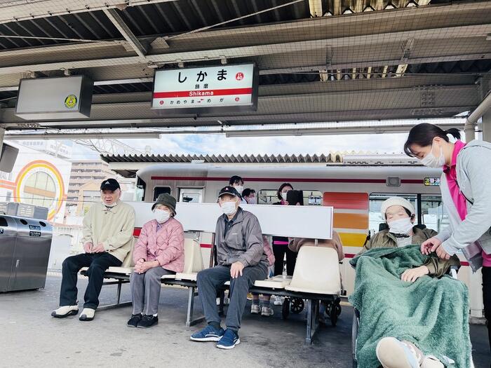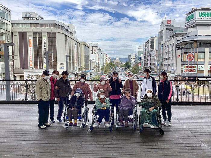 あぼし事業所は山陽電車の駅が近いことから、「利用者様に電車に乗っていただきたい」という職員の希望もあり、希望者の方は電車で姫路駅へ向かいました。
