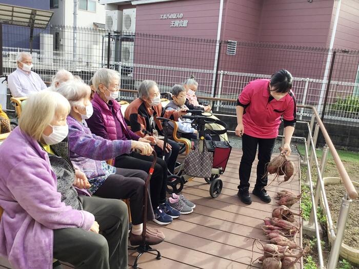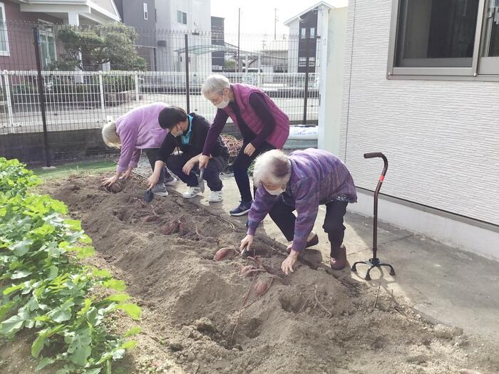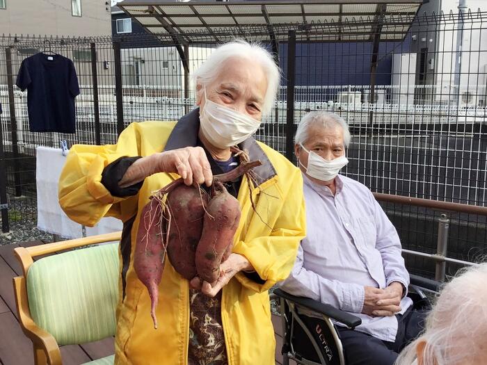 デイサービス龍野では季節の野菜を毎年作っています。秋野菜のサツマイモが大きく育ってくれ、先日ご利用者様と「芋掘り大会」を開催しました。昔を思い出し手際よく掘って下さる方、傍で掘れたお芋の大きさに歓声を上げられる方、賑やかな初秋のひと時を過ごしました。