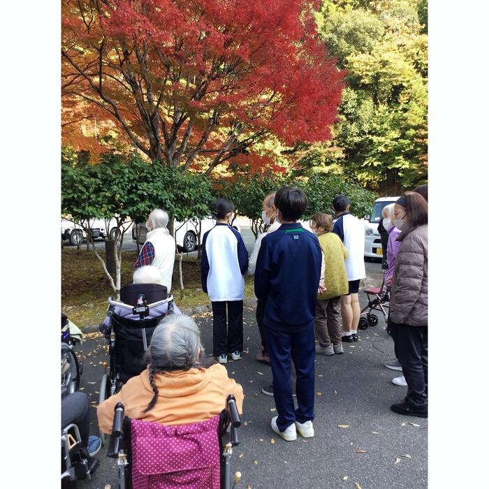 11月14日 秋晴れの午後、相生市で開催されている「かがし祭り」に龍野北高校実習生とトライやる中の龍野東中学校の生徒さんと一緒に見学ツアーに出掛けました。人物やアニメのキャラクターなどユニークな作品にご利用者様も笑顔で見入っておられました。紅葉も色付きはじめ景色も堪能されました。
