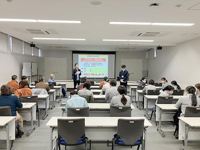 12月4日に海洋文化センターで行われた講座では、地域の皆さんが熱心に耳を傾けてくださり、認知症の症状について一緒に考える時間となりました。 また、12日に尾上小学校の4年生を対象に行った講座では、「こんな時はどう声をかける?」をテーマに、子どもたちが活発に意見を出し合っていました。